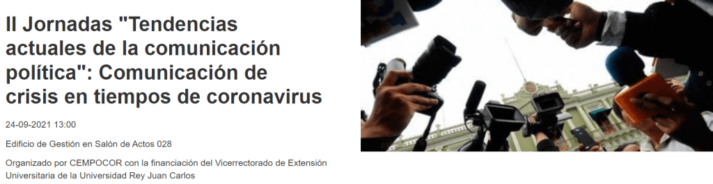 La crisis reciente del Covid ha visibilizado la falta de preparación del político y sus equipos de comunicación en la gestión de la comunicación de crisis. En esta charla daremos algunas herramientas para manejar este aspecto de la comunicación política. El evento tiene por objetivo hablar de la Comunicación de crisis en tiempos de coronavirus.